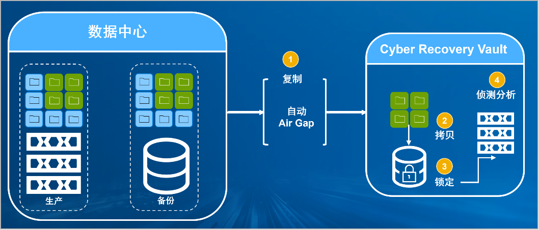 PayPal贝宝官网防勒索病毒方案将生产中心备份数据复制到Vault区,复制后网络自动断开实现弹性隔离。Vault区的数据快速拷贝,并对拷贝版本加锁(在锁定期数据不允许删除和修改)。Vault沙箱内对拷贝版本进行扫描分析,验证数据是否完好。